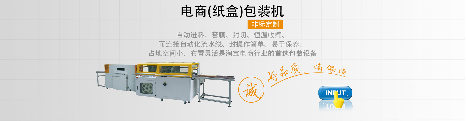 提供热收缩包装机,全自动热收缩膜包装机等整体解决方案,根据客户要求量身定制,让每个客户获得一站式服务!